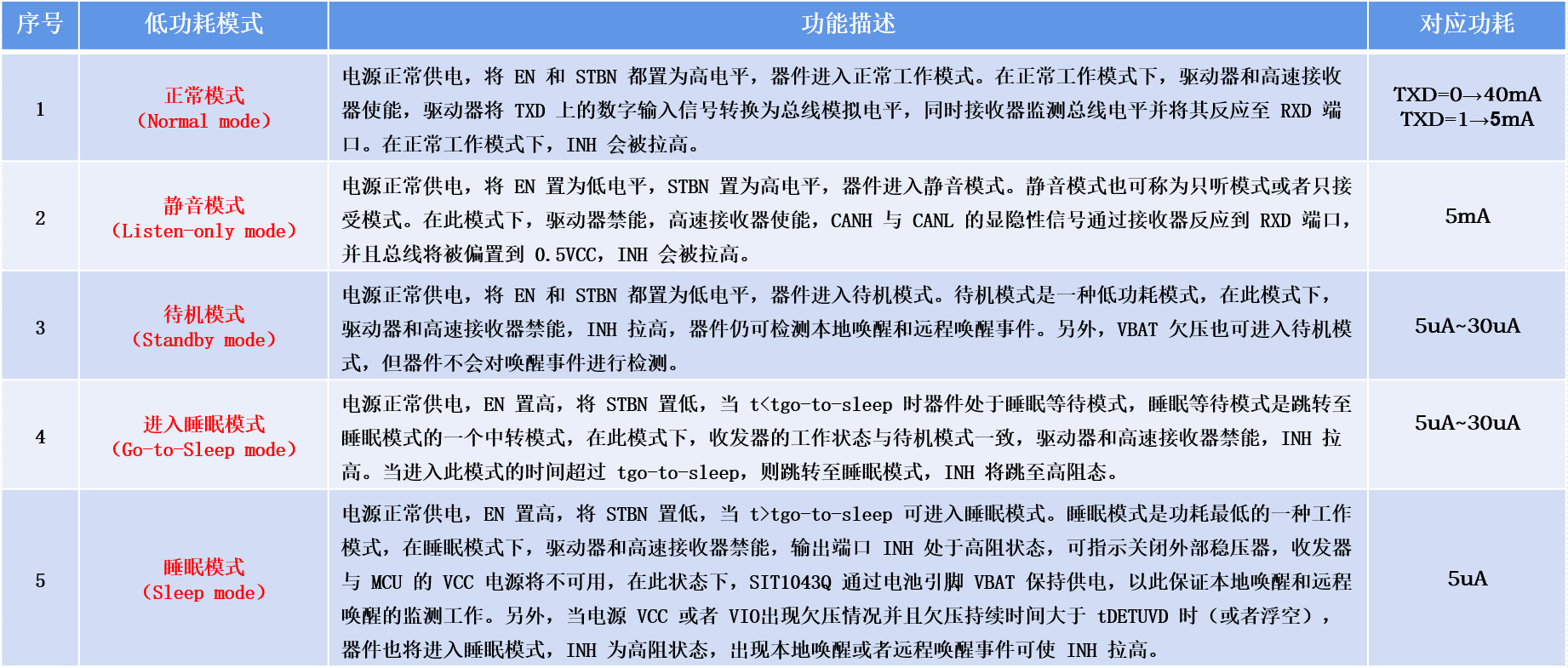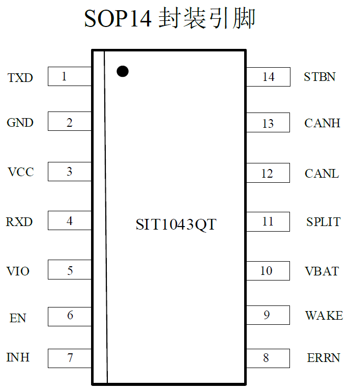 遠程喚醒:喚醒源來源于自身ECU節(jié)點所在的網(wǎng)絡(luò)報文,該節(jié)點可以處于完全睡眠狀態(tài),一般無能量消耗。這種喚醒的特點:只有當(dāng)CAN收發(fā)器監(jiān)控到總線電平變化或者特定報文時,就會接通CAN芯片INH引腳控制LDO給到主控芯片上電,從而喚醒ECU節(jié)點。芯力特公司的SIT1043Q CAN收發(fā)器兼容以上兩種喚醒功能,下面我們來對SIT1043Q做個簡單的介紹。